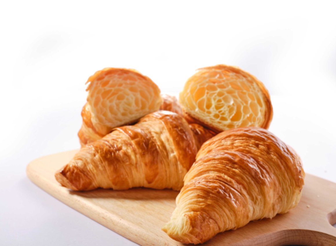 A Plain Croissant is a classic, crescent-shaped pastry made from layered dough, known for its flaky, buttery texture and light, airy interior. It is typically enjoyed as a breakfast item or snack. The term "croissant" originates from French, meaning "crescent," and is a staple in many bakeries worldwide.